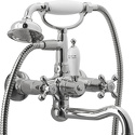 Назначение: ванна+душ • Конструкция: двухрычажный • Монтаж: вертикальный • Материал: покрытие - хром • Подводка: жесткая • Монтажные отверстия: 2 отверстия • Форма излива: традиционная • Душевая лейка в комплекте: есть • Держатель для душевой лейки: на смесителе
