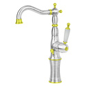 Назначение: для умывальника • Конструкция: однорычажный • Монтаж: горизонтальный • Материал: латунь, покрытие - двухцветный • Монтажные отверстия: 1 отверстие • Форма излива: традиционная • Душевая лейка в комплекте: нет