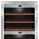 Тип: двухкамерный винный шкаф • Расположение: отдельностоящий • Количество компрессоров: 1 • Цвет: нерж.сталь • Размеры (ШxВxГ): 595x1035x680 мм • Количество дверей: однодверный • Винный шкаф: 66 бут. • Управление: цифровой дисплей, электронное • Освещение в холодильной камере: есть • Перевешиваемые двери: есть • Холодильная камера: полка для бутылок x 7 • Материал полок: дерево • Класс энергопотребления: A