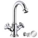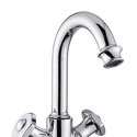 Назначение: для умывальника • Конструкция: двухрычажный • Монтаж: горизонтальный • Материал: покрытие - хром • Монтажные отверстия: 1 отверстие • Форма излива: традиционная • Душевая лейка в комплекте: нет