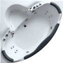 Материал: акрил • Расположение: отдельно стоящая, угловая конструкция • Форма: четверть круга • Количество мест: двухместная • Гидромассаж: есть, 6 форсунок • Подсветка: есть • Комфорт: подголовник, ручки • Смеситель в комплекте: есть • Размеры (ДxШxВ): 152.50x152.50x65 см