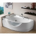 Материал: акрил • Расположение: отдельно стоящая, угловая конструкция • Форма: нестандартная • Количество мест: одноместная • Гидромассаж: есть, 5 форсунок • Подсветка: есть • Комфорт: подголовник • Смеситель в комплекте: есть • Размеры (ДxШxВ): 160x95x59 см