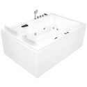 Материал: акрил • Расположение: отдельно стоящая • Форма: прямоугольная • Количество мест: двухместная • Гидромассаж: есть, 16 форсунок • Подсветка: есть • Комфорт: подголовник • Смеситель в комплекте: есть • Размеры (ДxШxВ): 180x120x70 см