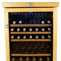 Тип: двухкамерный винный шкаф • Расположение: отдельностоящий • Количество компрессоров: 1 • Цвет: венге, вишневый, дуб, коричневый • Размеры (ШxВxГ): 670x980x593 мм • Количество дверей: однодверный • Винный шкаф: 45 бут. • Разморозка: автоматическая • Управление: цифровой дисплей, электронное • Освещение в холодильной камере: есть • Материал полок: дерево • Сигнал об открытой двери: световая индикация