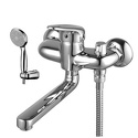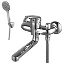 Комплектация - Держатель душевой лейки, душевой шланг, ручной душ, Покрытие - Хром, Материал корпуса - Латунь, Форма излива - Традиционная, Аэратор - Есть, Максимальный расход воды - 23, Тип - Однозахватный, Тип подводки - Жесткая, Назначение - Для ванны и душа, Количество монтажных отверстий - 2, Термостат - Нет, Встраиваемый - Нет, Присоединительный размер - 1\2", Поворотный излив - Да, Донный клапан - Нет, Длина излива - 240, Цвет - Серебристый