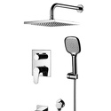 Покрытие - Хром, Максимальный расход воды - 23, Тип - Однозахватный, Термостат - Нет, Встраиваемый - Да, Присоединительный размер - 1\2", Материал корпуса - Латунь, Назначение - Для ванны и душа, Донный клапан - Нет, Форма излива - Традиционная, Аэратор - Есть, Цвет - Серебристый, Количество монтажных отверстий - 3, Поворотный излив - Нет, Комплектация - Верхний душ, Держатель душевой лейки, душевой шланг