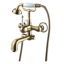 Комплектация - Держатель душевой лейки, душевой шланг, ручной душ, Назначение - Для ванны и душа, Покрытие - Бронза, Материал корпуса - Латунь, Встраиваемый - Нет, Донный клапан - Нет, Присоединительный размер - 1\2", S-образные эксцентрики - Есть, Термостат - Нет, Количество монтажных отверстий - 2, Длина излива - 213, Тип - Однозахватный, Тип подводки - Жесткая, Форма излива - Традиционная, Высота - 26.4, Поворотный излив - Нет, Цвет - Бронзовый, Аэратор - Есть, Глубина - 23