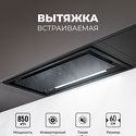 конструкция скрытая • монтаж для встраивания • ширина 52 см • управление сенсорное/дистанционное • производительность вытяжки 650 м³/ч • производительность мотора 850 м³/ч • цвет черный