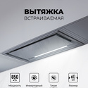 конструкция скрытая • монтаж для встраивания • ширина 52 см • управление сенсорное/дистанционное • производительность вытяжки 650 м³/ч • производительность мотора 850 м³/ч • цвет серый
