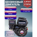 Производитель: Lifan Модель: 170F-C PRO - Тип топлива: бензин - Объем: 212 см³ - Мощность: 5.1 кВт, 7 л.с. - Запуск: ручной - Вал: шпонка, диаметр 20 мм Описание