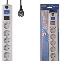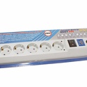 Розеток: евро 5 шт, евро без заземления 1 шт • Длина кабеля: 2 м • Мощность подключения: 2200 Вт • Защита: короткое, перепады, импульсные