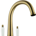Назначение: кухонный • Конструкция: однорычажный • Монтаж: горизонтальный • Клапан: керамический • Материал: латунь, покрытие - латунь • Подводка: гибкая • Монтажные отверстия: 1 отверстие • Форма излива: традиционная • Душевая лейка в комплекте: нет • Аэратор: есть • Донный клапан в комплекте: есть