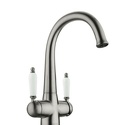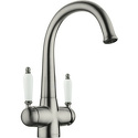 Комплектация - Смеситель, комплект подводки, полный набор креплений для подключения, инструкция, гарантийный талон, салфетка из микрофибры, Тип - Двухзахватный, Покрытие - PVD покрытие, Поворотный излив - Да, Длина излива - 200, Коллекция - Luxury, Материал корпуса - Латунь, Количество монтажных отверстий - 1, Форма излива - Традиционная, Назначение - Для мойки, Присоединительный размер - 1\2", Цвет - Серебристый, Высота излива - 197, Тип подводки - Гибкая, Аэратор - Есть, Ширина - 15.2, Высота - 30