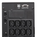 Тип: интерактивный • Сигнал: синусоида • Мощность: 2000 ВА, эффективная 1400 Вт • Розетки: C13/C14 с резервом, C19/C20 с резервом 1 шт • Батарея: 9 Ач, батарей 2 шт, подкл. внешнего аккумулятора