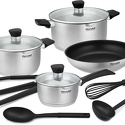 Состав набора3 крышки, Венчик, Кастрюли-2шт., Ковш, Ложка, Лопатка, Половник, Сковорода, Щипцы