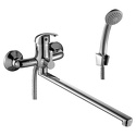 Аэратор - Есть, Донный клапан - Нет, Глубина - 41.8, Термостат - Нет, Длина излива - 403, Тип подводки - Жесткая, Назначение - Для ванны и душа, Комплектация - Держатель душевой лейки, ручной душ, Присоединительный размер - 1\2", S-образные эксцентрики - Есть, Цвет - Серебристый, Тип - Однозахватный, Поворотный излив - Да, Материал корпуса - Латунь, Количество монтажных отверстий - 2, Форма излива - Традиционная, Покрытие - Хром, Встраиваемый - Нет