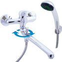 Назначение: универсальный • Конструкция: однорычажный • Монтаж: вертикальный • Материал: латунь, покрытие - хром • Подводка: жесткая • Монтажные отверстия: 2 отверстия • Форма излива: традиционная • Душевая лейка в комплекте: есть • Держатель для душевой лейки: настенный держатель • Аэратор: есть • Эксцентрики в комплекте: есть • Донный клапан в комплекте: есть