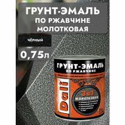 DALI Грунт-эмаль по ржавчине 3 в 1 молотковая черная, 0,75 л