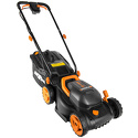 роторная газонокосилка • аккумуляторный двигатель • работа от аккумулятора • ширина скашивания: 34 см • мягкий травосборник 30 л • корпус: пластик