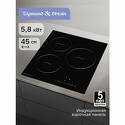 индукционная на 3 конфорки • cтеклокерамика • мощность: 5800 Вт • независимая установка • размеры (ШхГ): 45x52 см